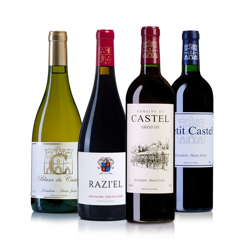 3 בקבוקים – Castel Grand Vin 2018 3 בקבוקים – C Blanc du Castel 2019 3 בקבוקים – Petit Castel 2019 3 בקבוקים – Razi’el 2018